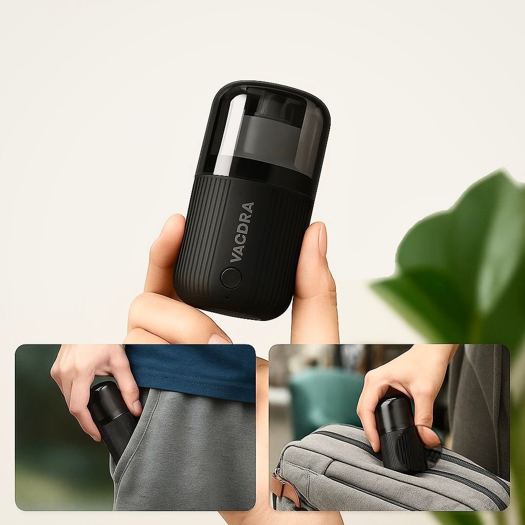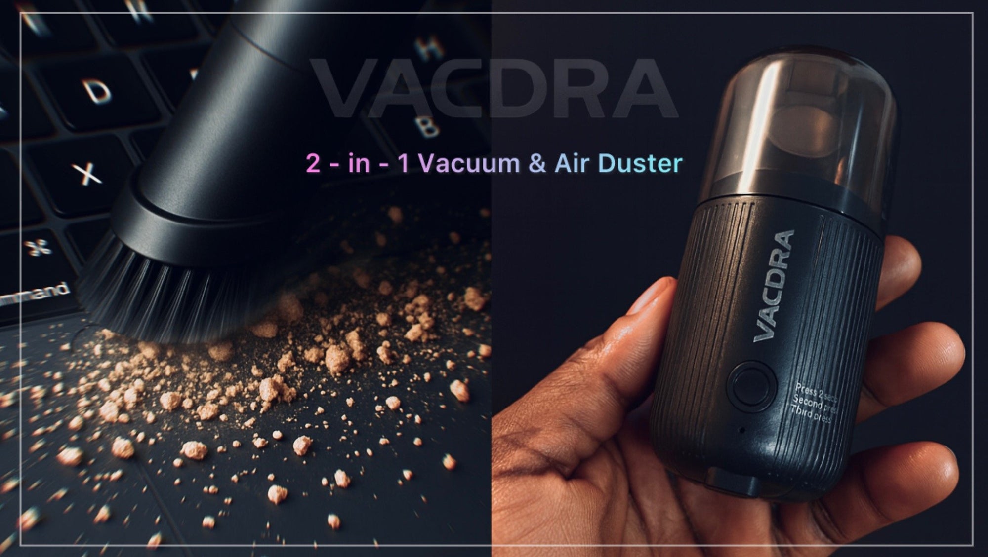 A compact yet powerful 2-in-1 vacuum and air duster designed for effortless cleaning of desktops, keyboards, and small spaces. The VACDRA Mini easily removes eraser crumbs, pet hair, and dust from even the tightest corners.